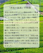 西尾市産の茶葉を100%使用しているため、最終製品へ地域ブランド 「西尾の抹茶」のロゴマークをご使用いただけます。